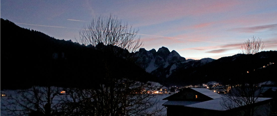 The second penthouse apartment on the top floor with a view of the impressive Gosaukamm is our coolest mountain loft. This wonderful sunny place was the first thing that crept into our hearts and finally moved us to realize the Dachstein 7. The tiled stove and the rustic, open roof truss rounds off the feel-good experience.